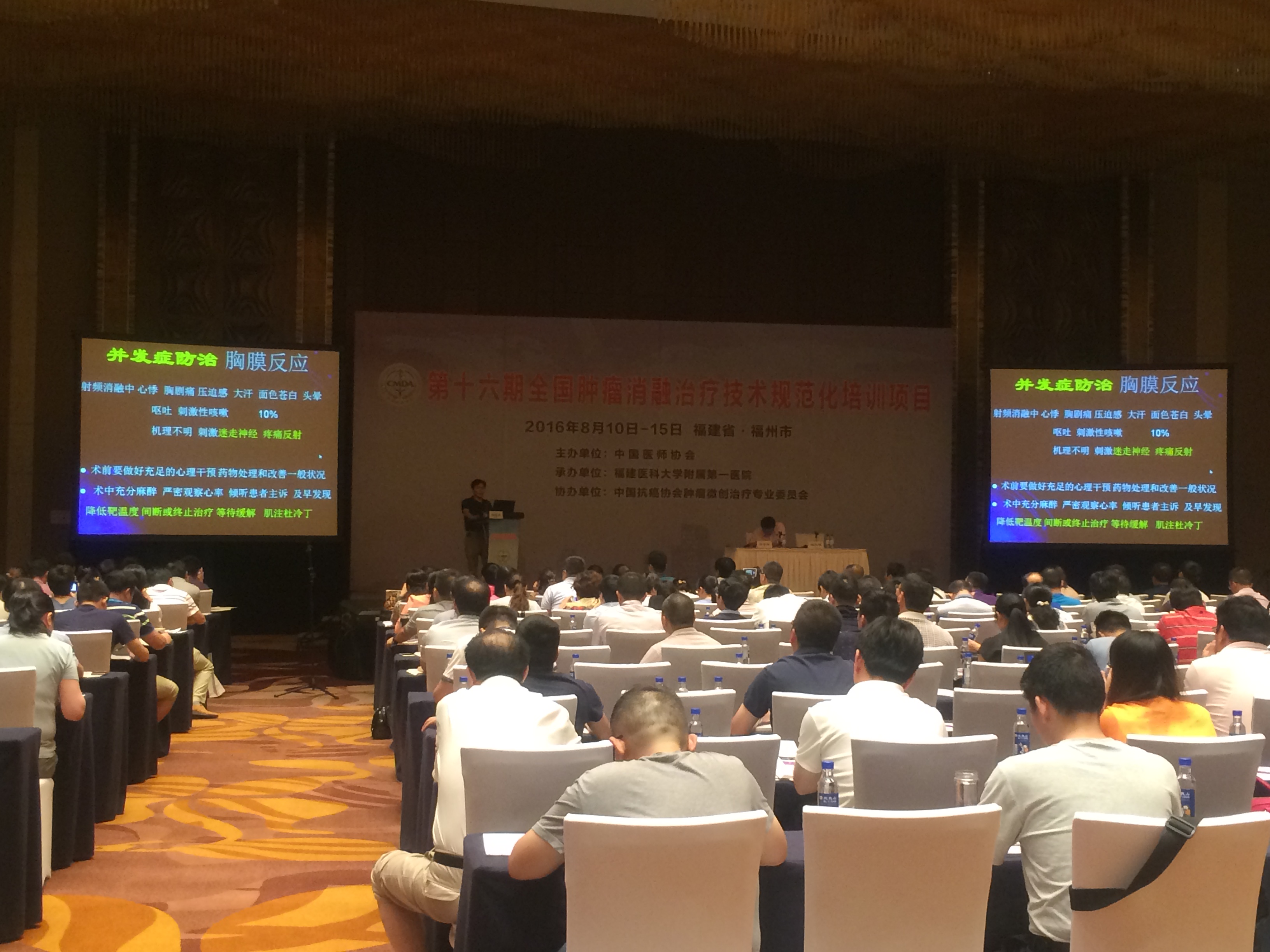 2016年8月11日-15日,第十六期全国肿瘤消融治疗技术规范化培训项目在福建省福州市举行,来自全国各地的300多名医生报名参加,接受了肿瘤消融治疗技术的专业培训。本次培训会议由国家卫生计生委委托中国医师协会组织主办,福建医科大学附属第一医院承办,中国抗癌协会肿瘤微创治疗专业委员会协办。